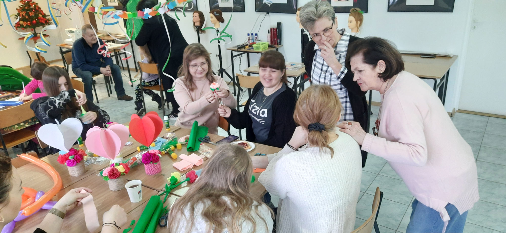 Z atrakcji Ferii Rodzinnych z CKZiU mogli skorzystać zarówno dorośli, jak i dzieci. Każdy miał możliwość pokolorowania swojej ulubionej postaci z bajki lub stworzenia pięknych ozdób z bibuły. Nie zabrakło także podstawowych instrukcji fryzjerskich lub krawieckich dla zainteresowanych, a wspólnie odtańczona zumba sprawiła wiele radości młodszym i starszym uczestnikom wydarzenia. Nikt też nie pozostał bez słodkiego poczęstunku. Kolorowe babeczki oraz świeżo wypiekane gofry ucieszyły niejedną głodną buzię.